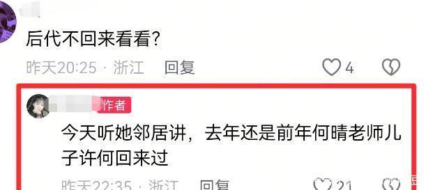 让人遗憾的是,母亲刚离世,何晴就在2015年查出患了脑瘤。 因为害怕耽误儿子的学习,何晴一直让许何跟爸爸居住,即使病危住院,她也从未耽误过孩子。 何晴住院期间,有时候是拜托邻居帮忙,有时候是妹妹伺候她,生前10年一直在和病魔做斗争。